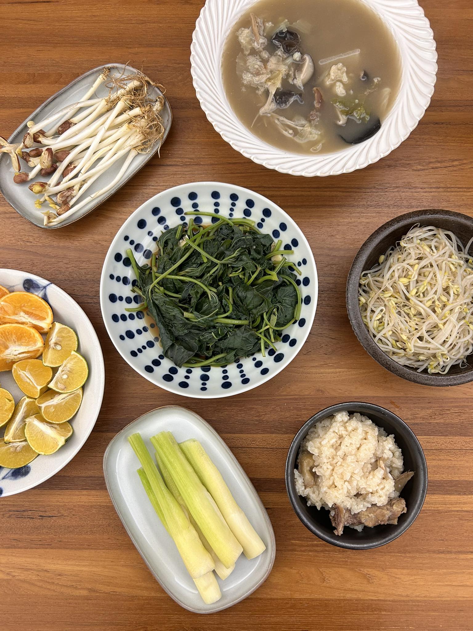 蒸飯、燙菜⋯⋯